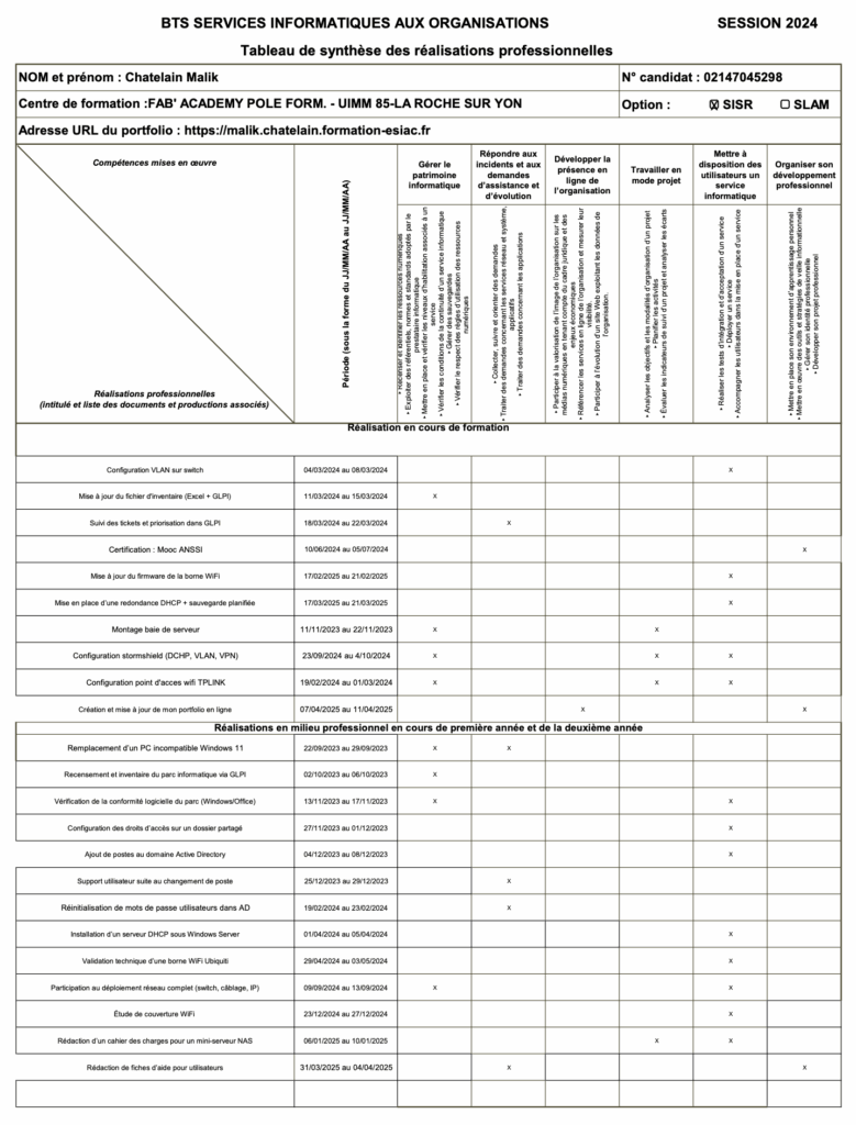 Je suis étudiant en deuxième année de BTS SIO (Services Informatiques aux Organisations), spécialité SISR (Solutions d’Infrastructure, Systèmes et Réseaux), au sein du centre de formation de l’UIMM à La Roche-sur-Yon. Attiré depuis longtemps par l’informatique et les nouvelles technologies, j’ai naturellement choisi cette voie après l’obtention de mon BAC Professionnel SN (Systèmes Numériques) en 2022.